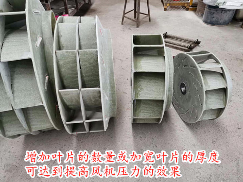 加大葉片的寬度、厚度以及調(diào)整葉片的弧度都可不同程度的提高風(fēng)壓,如本公司生產(chǎn)的玻璃鋼高壓風(fēng)機(jī)就是通過噶便葉輪的規(guī)格來達(dá)到使用標(biāo)準(zhǔn)。