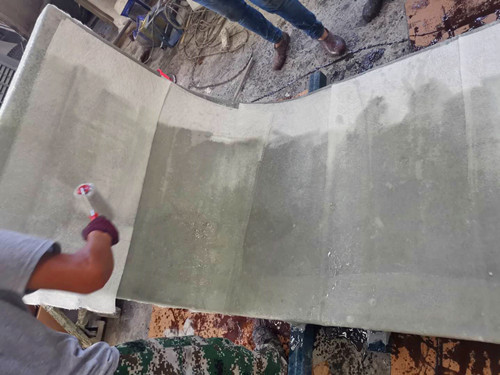 f、按照既定的標(biāo)準(zhǔn)在模具上刷樹(shù)脂與玻璃纖維材料,一般玻纖材料主要以玻纖氈與玻纖布為主;