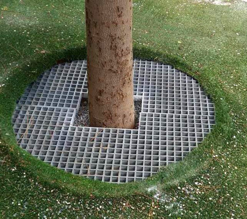 將玻璃鋼材質(zhì)的網(wǎng)格板進(jìn)行切割之后,安裝與樹木的根部,用來保護(hù)樹木周圍的土壤不會因雨水而流失。而且能夠起到凈化街道的作用,下面一些樹篦子安裝效果圖的展示。