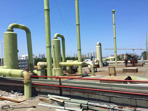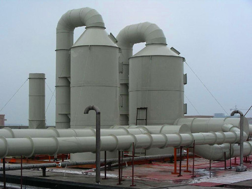 通過(guò)洗滌的方式除去氣體中的雜質(zhì),然后通過(guò)風(fēng)機(jī)將達(dá)標(biāo)的氣體排出是廢氣處理的基本流程。本公司生產(chǎn)的玻璃鋼洗滌塔與風(fēng)機(jī)均具備非常優(yōu)秀的防腐蝕性能,在工業(yè)生產(chǎn)中使用較多。下面展示一些玻璃鋼洗滌塔的安裝示例圖。