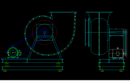 本文為大家展示一些玻璃鋼離心風機解剖圖,讓大家對風機的配件以及結構有比較直觀清晰的理解。下面兩種圖分別是90°和180°的玻璃鋼離心風機的簡易圖紙。
