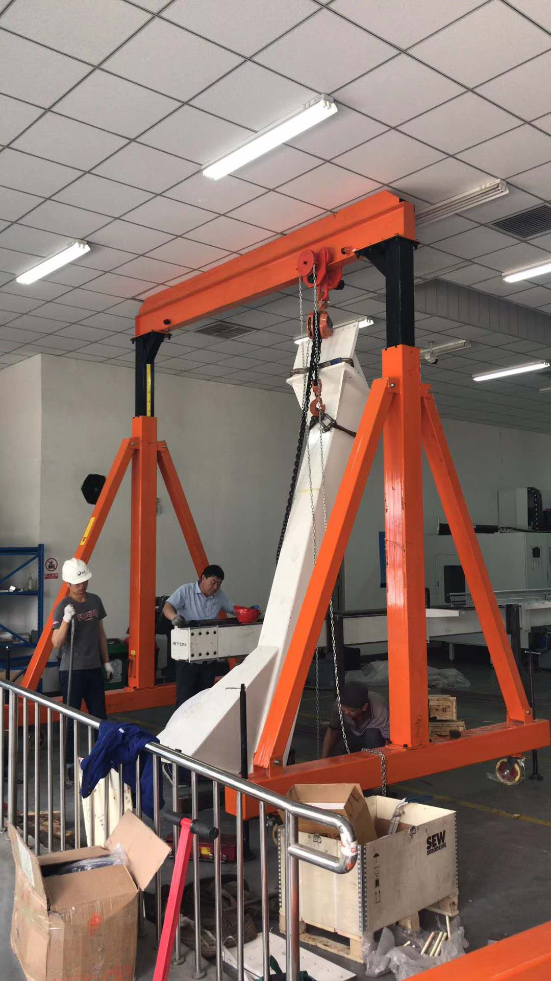 3、如果要讓龍門吊移動就要提前清理好行走范圍內的地面。如果我們的小型龍門吊是可以移動的,大家在對它移動之前,一定要先對移動范圍內的地面進行清理,確保工作范圍內沒有障礙物,并且移動的地面應該是水平的,地面上不能有坑坑洼洼的不平,不然在推行過程中很容易發生意外。