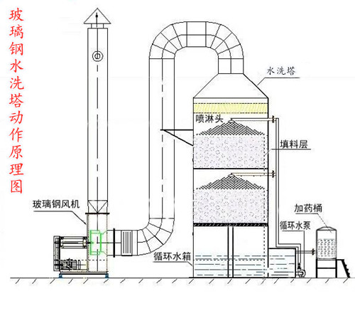 注:上文介紹的洗滌方式以除去廢氣中的灰塵為主,如果廢氣中含有酸性成分如硫酸、氫氟酸等,需要將塔體底部的液體更換為堿溶液(氫氧化鈉)。